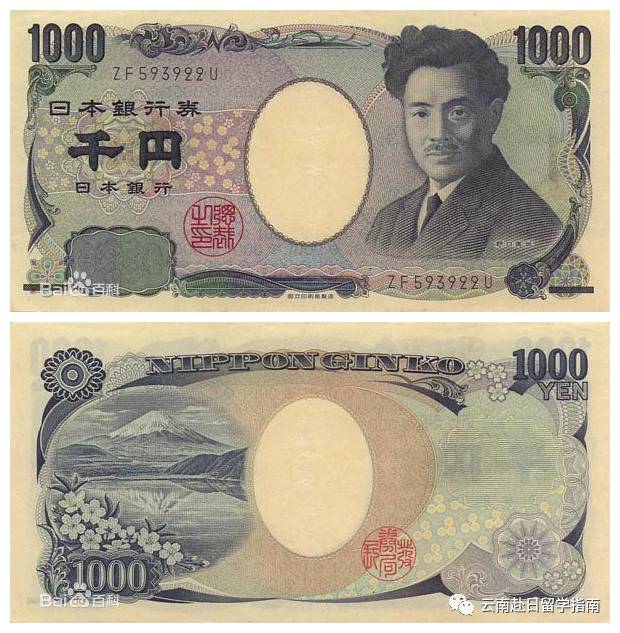 正面:日本小說家夏目漱石 背面:兩只仙鶴