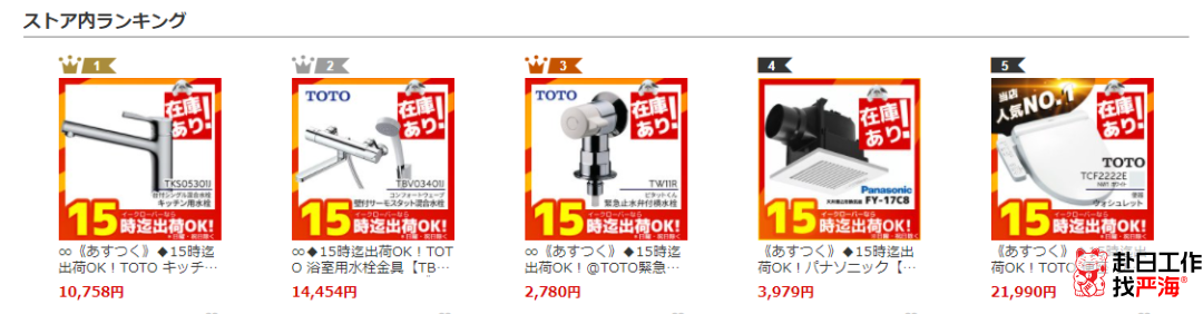主營產品是換氣扇,水龍頭配件,熱水器,空調等家庭必須品?!炯译姢茸≡Oのイークローバー】在雅虎排行榜中已蟬聯13年,不得不贊嘆他們的服務是真的好。店鋪上架的產品90%以上都是有庫存的產品,15點前下單的產品當天均可發貨。對于不方便去實體店購物又急需的人群來說,這家店簡直是救星。