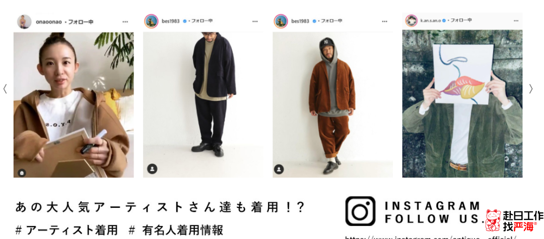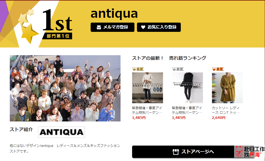 主營產品是女性服裝。店鋪90%的產品都是純色,非常符合日本人低調,簡約的個性。產品都由店鋪獨立設計,并不是滿大街都有的款式。店鋪首頁還能看到各類ins紅人身著antiqua家衣服的照片,想必推廣花了很大的心思。