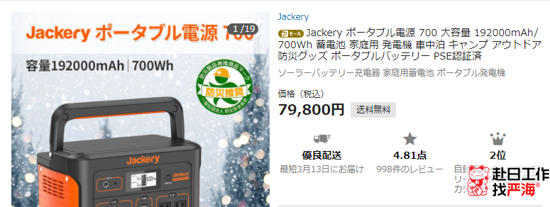 主營產品是可在戶外使用的超大容量便攜式電源和環保型太陽能電池板。【Jackery Japan ヤフー店】可以說是所有獲獎店鋪中產品數量最少的店鋪了。整個店鋪總共12件產品。店鋪銷量第一的便攜式電源540條評論平均分4.83,銷量第二998條評論平均分4.81,可想而知【Jackery Japan ヤフー店】的產品是非常優秀了。在日本人眼中東西好只值3.5分,4.5分以上是產品超出預期的優秀了。