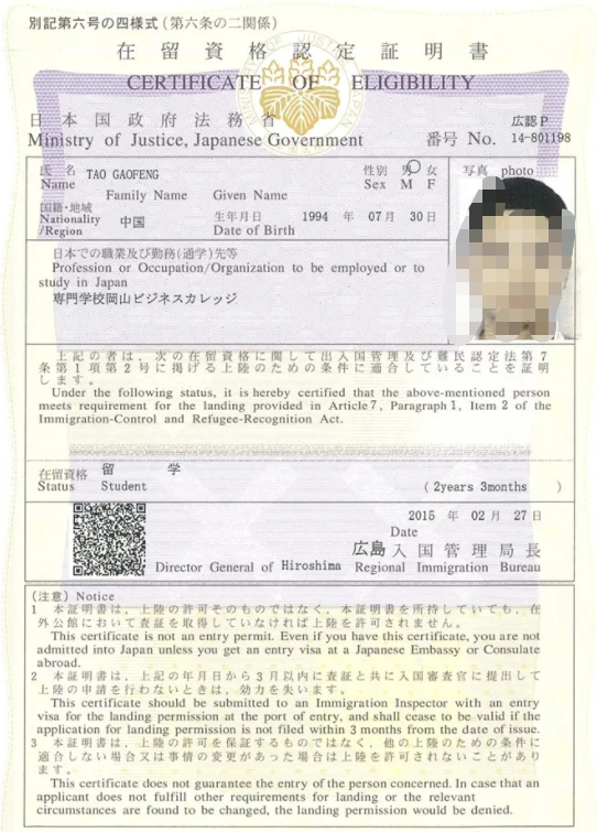 在護照中存在有關于在留資格與在留期限的記載,請預先予以確認。居留期間不得從事許可資格以外的活動。詳情請向距離居住地點最近的地方入國管理局咨詢。