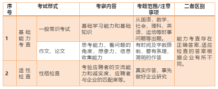 日企的筆試一般分為以下幾種,一般從學習能力和性格上對面試者進行測試,根據(jù)企業(yè)選人要求不同,需要參加的考試種類也有所變化。