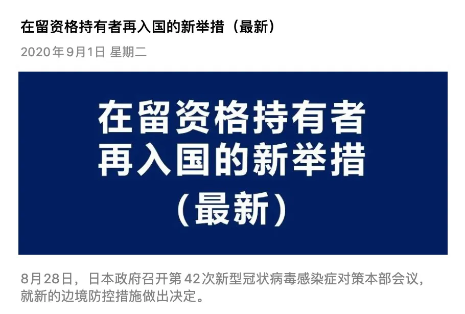 按照新措施,日本政府允許在8月31日(含31日)前(注)離開日本的、持有有效的日本在留資格以及有效的再入國許可(包括《視同再入國許可》)的人員,在辦理指定手續后再次入境日本。