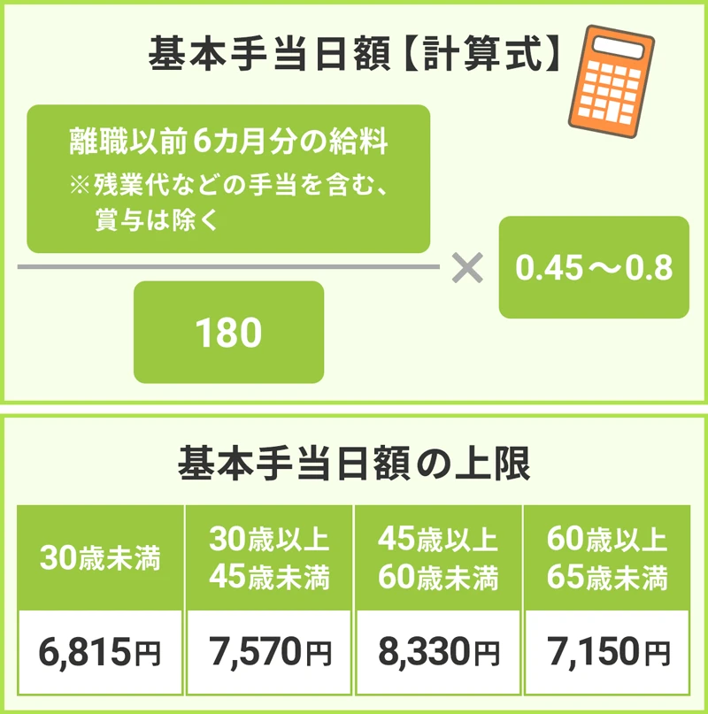 支付率根據年齡和工資日額,在45%~80%的范圍內決定,具體要看工作期間的工資標準和所在地政策,由于計算方法復雜,所以一定要詢問公共職業安定所。從2019年8月開始,厚勞省公布了不同年齡段新的上限額: