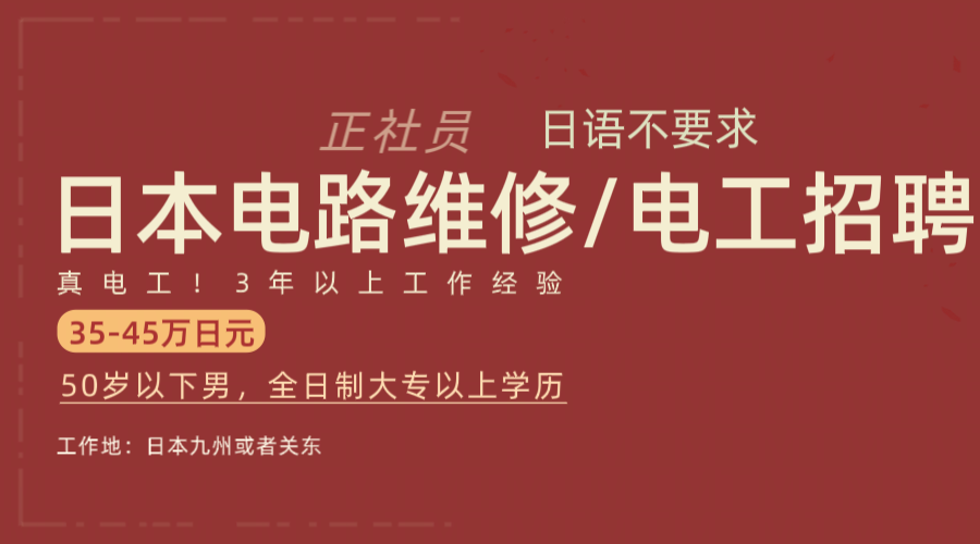 年齡:50歲以內,全日制大專以上學歷,有三年以上電工工作經驗,日語不要求。