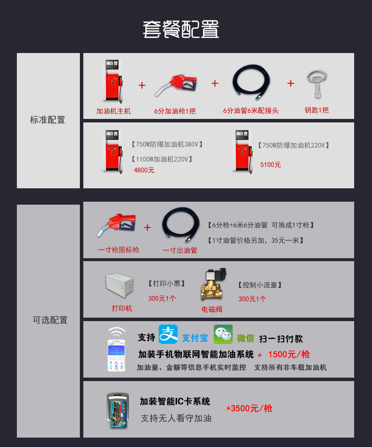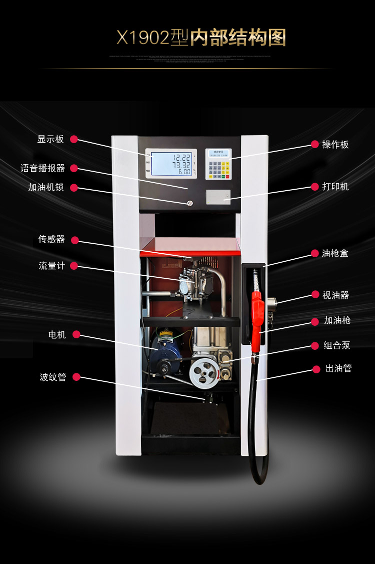 銳嘉物聯網加油機IC卡加油機150X型是一款加油站防爆汽油插卡加油機,可加柴油和汽油,750W大功率,流量每分鐘可達60L-100L,加油機內部采用軟活塞流量計和防爆組合泵裝置,安全更放心!
