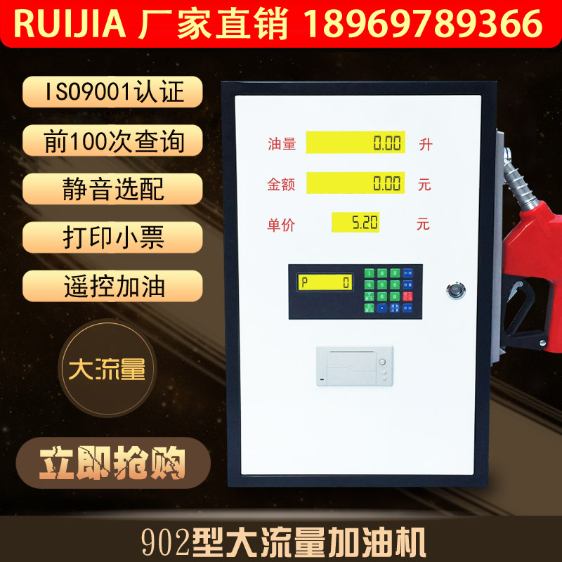 銳嘉柴油加油機902型是一款全自動 高精度的車載加油機,本加油機采用全鋁合金渦輪流量計,可以打印小票,遙控加油,計量精度達0.3%,一年保修 終生維護 全國包郵。